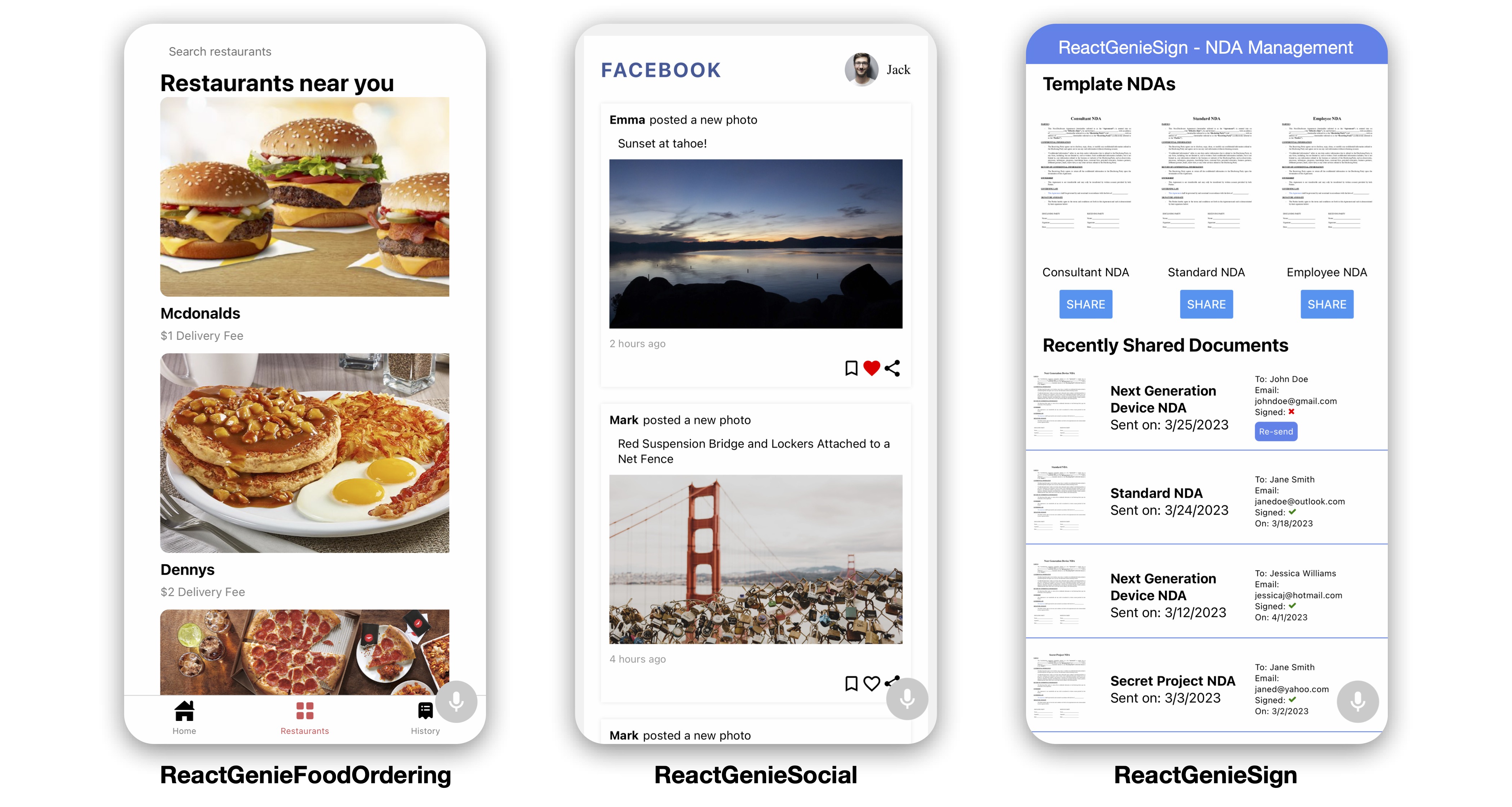 - ReactGenieSign: A business application for managing non-disclosure agreements and contracts.