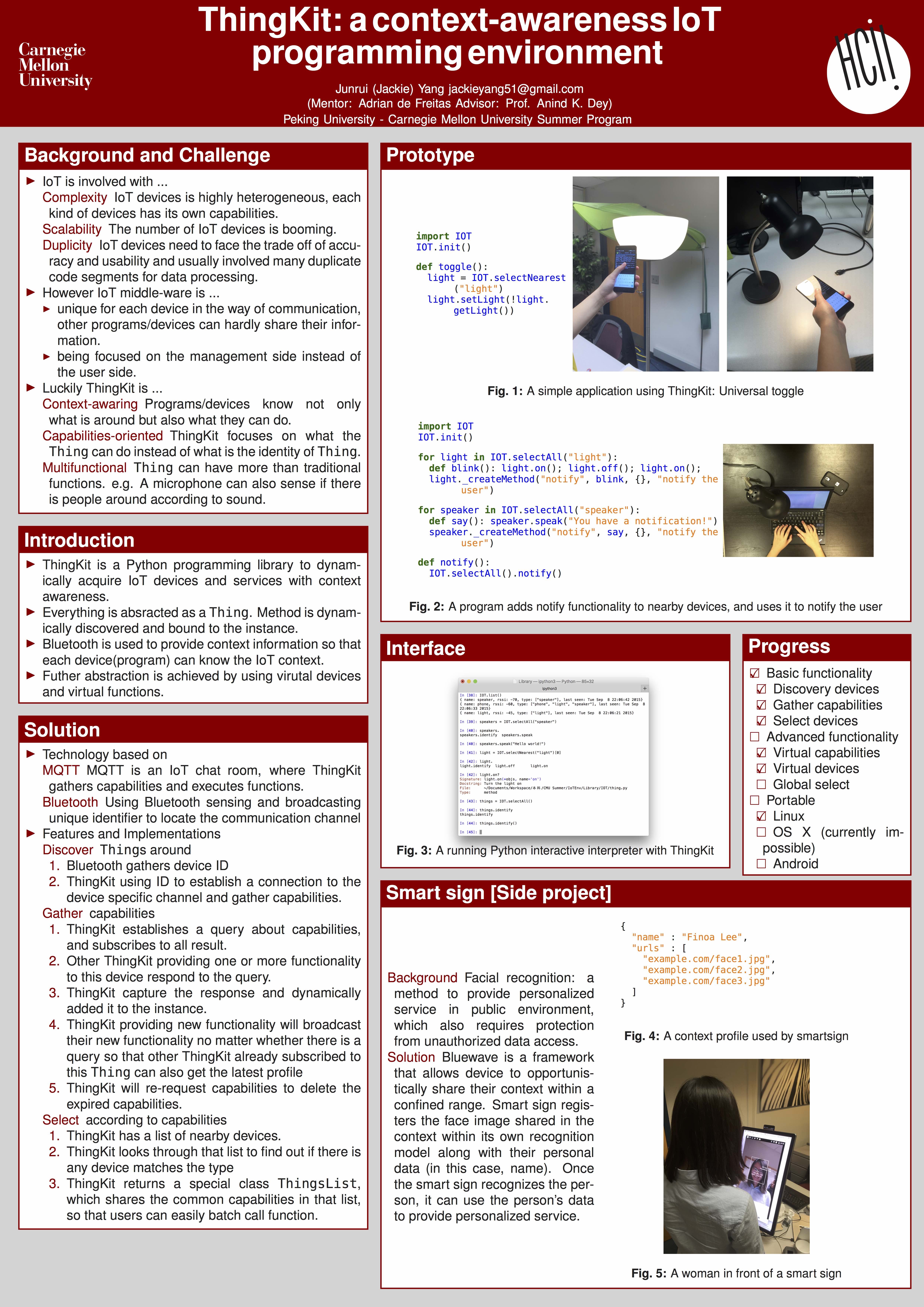 ThingKit is an internet of things (IoT) programming framework. By abstracting every entity to an object, the framework provide a flexible way for developers to select and command IoT devices by the user context and object type.